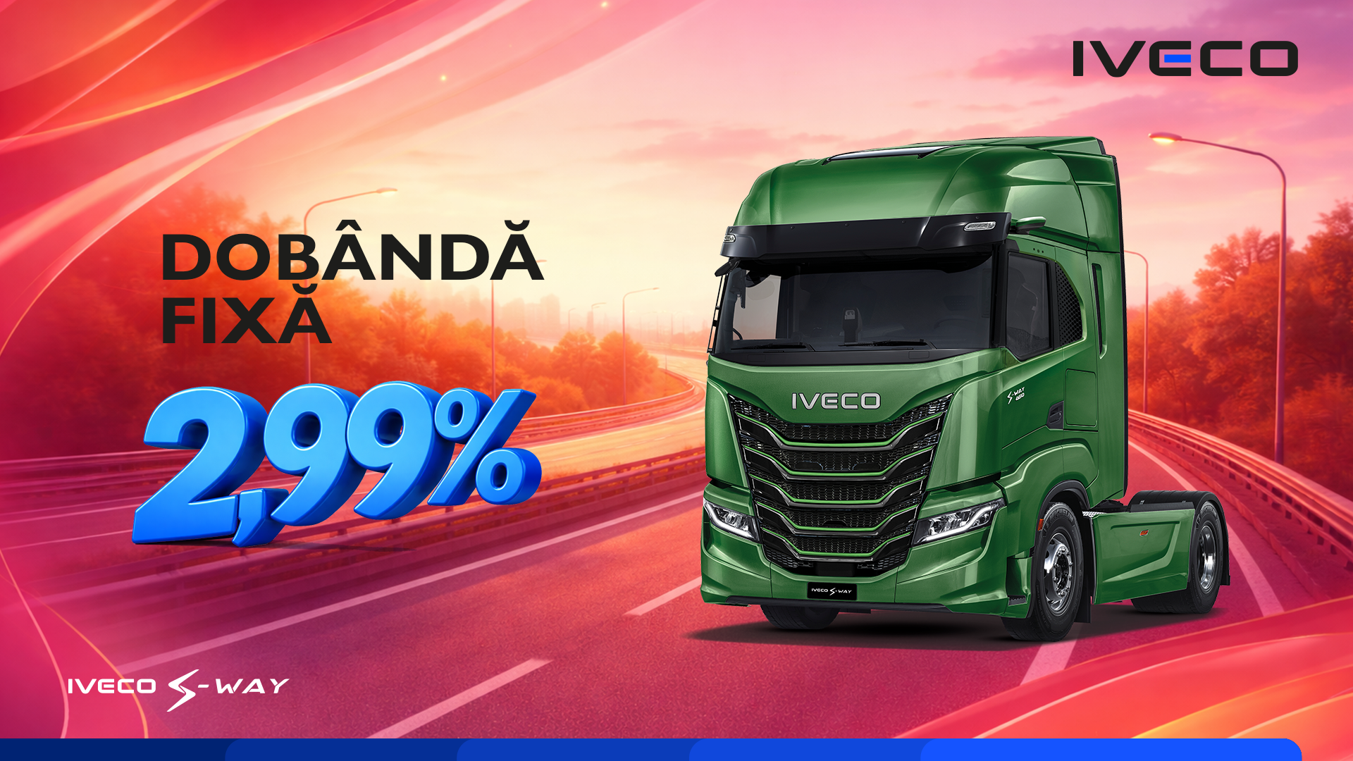 Construit pentru nevoile dumneavoastră, cu un design nou şi elegant, IVECO S-Way este acum mai sigur şi mai productiv ca niciodată cu garanție extinsă pentru 3 ani cu dobândă preferenţială.